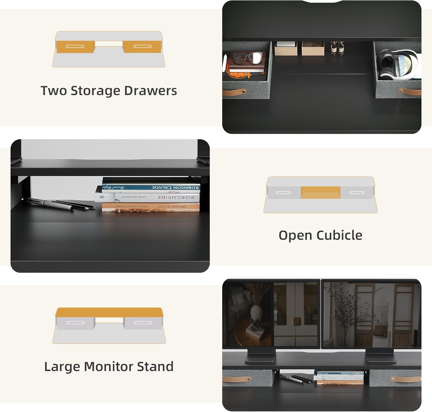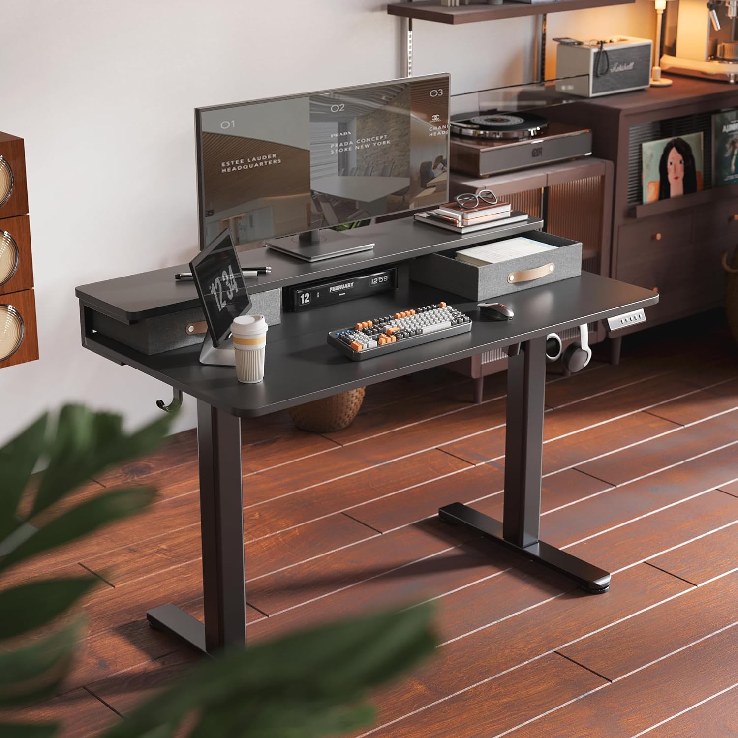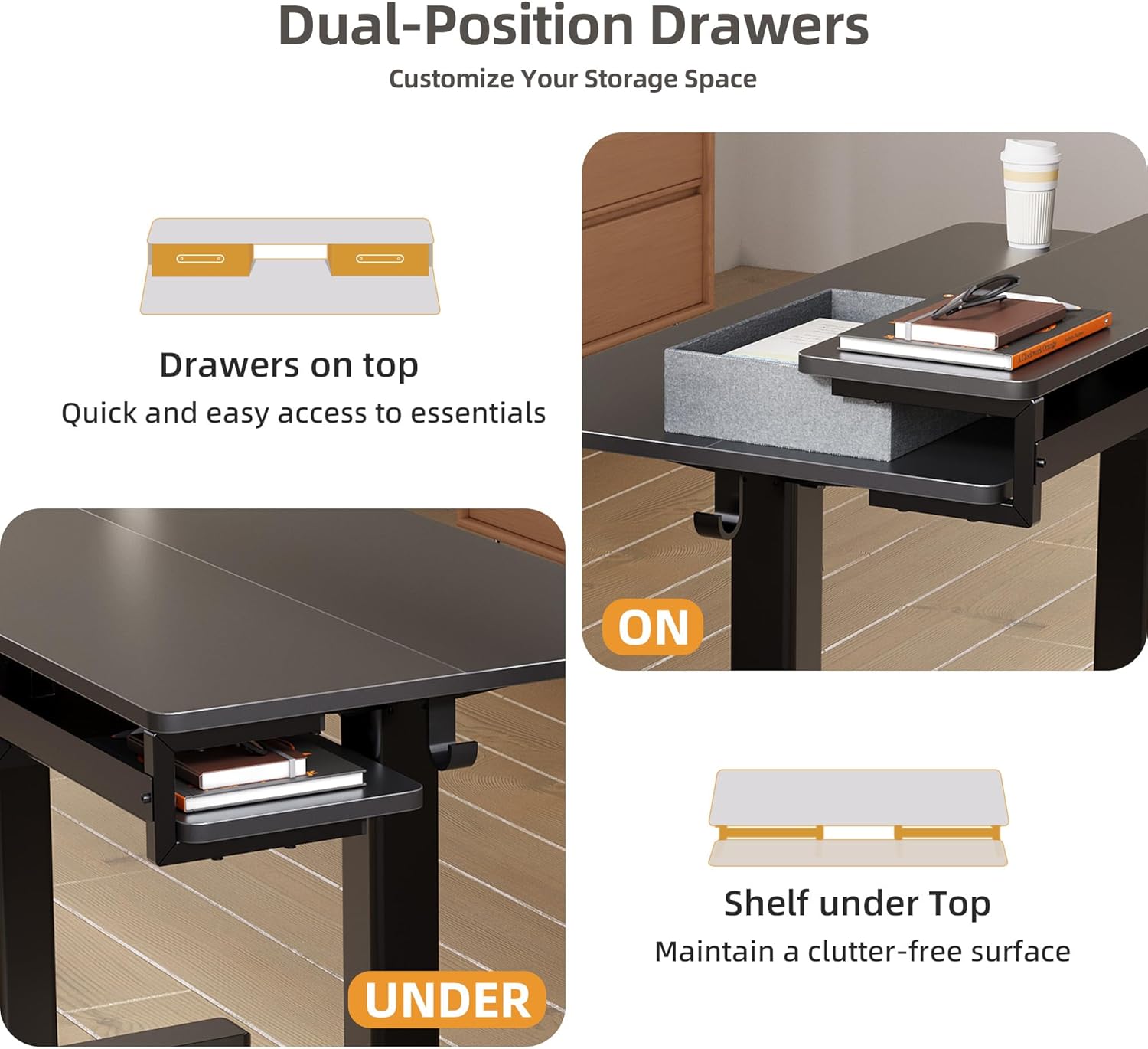 Seang Electric Standing Desk with 2 Drawers, Adjustable Standing Desk with Storage Shelf, Height Adjustable Stand up Desk for Home Office with 3 Presets & 2 Hooks,48 Inch, Black